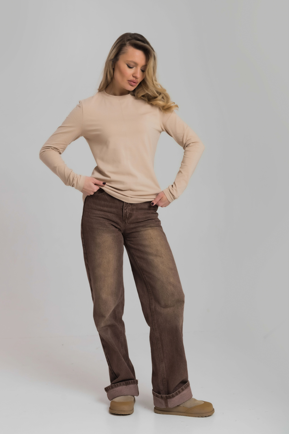 Лонгслив полуприлегающего силуэта из однотонной кулирки