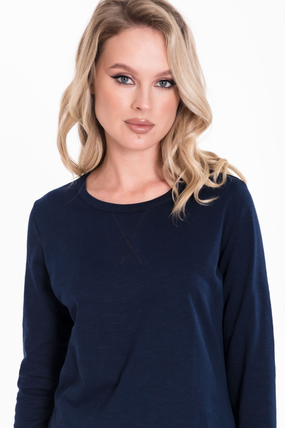 Женская туника изготовлена из полотна кулирка Фламли, что придает ей особую текстуру и интересный внешний вид. Модель туники свободного силуэта обеспечивает комфорт и свободу движений. Длинные рукава добавляют уют и тепло.