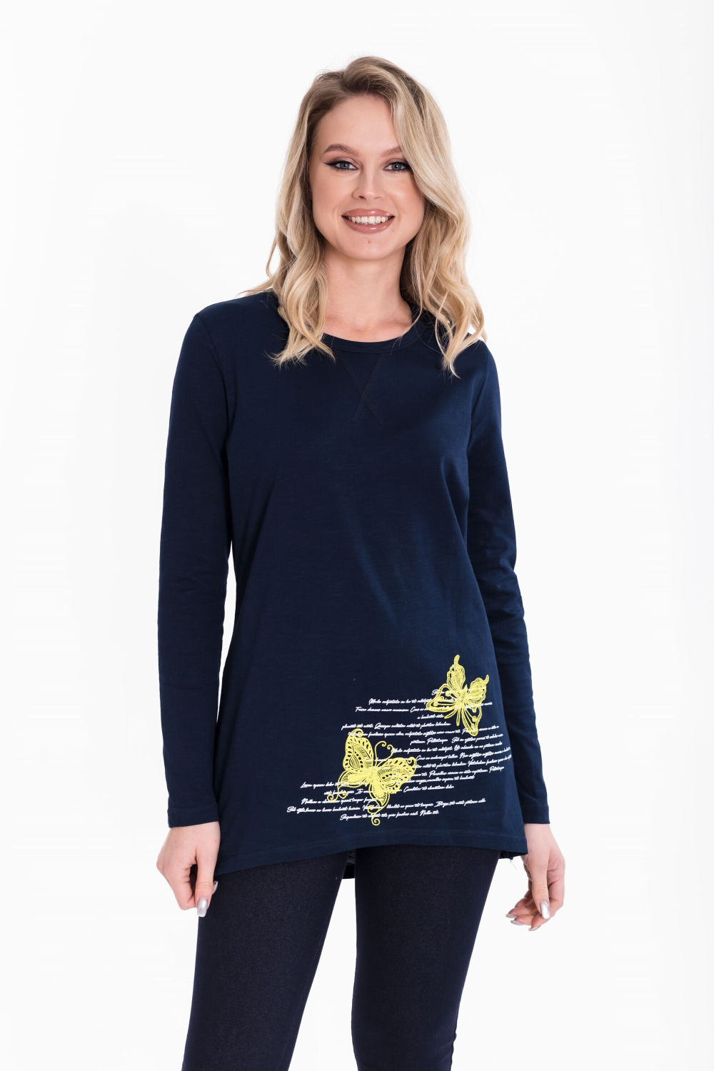 Спереди расположен принт, который добавляет тунике индивидуальности. Этот элемент декора привлечет внимание и сделает ваш образ запоминающимся.