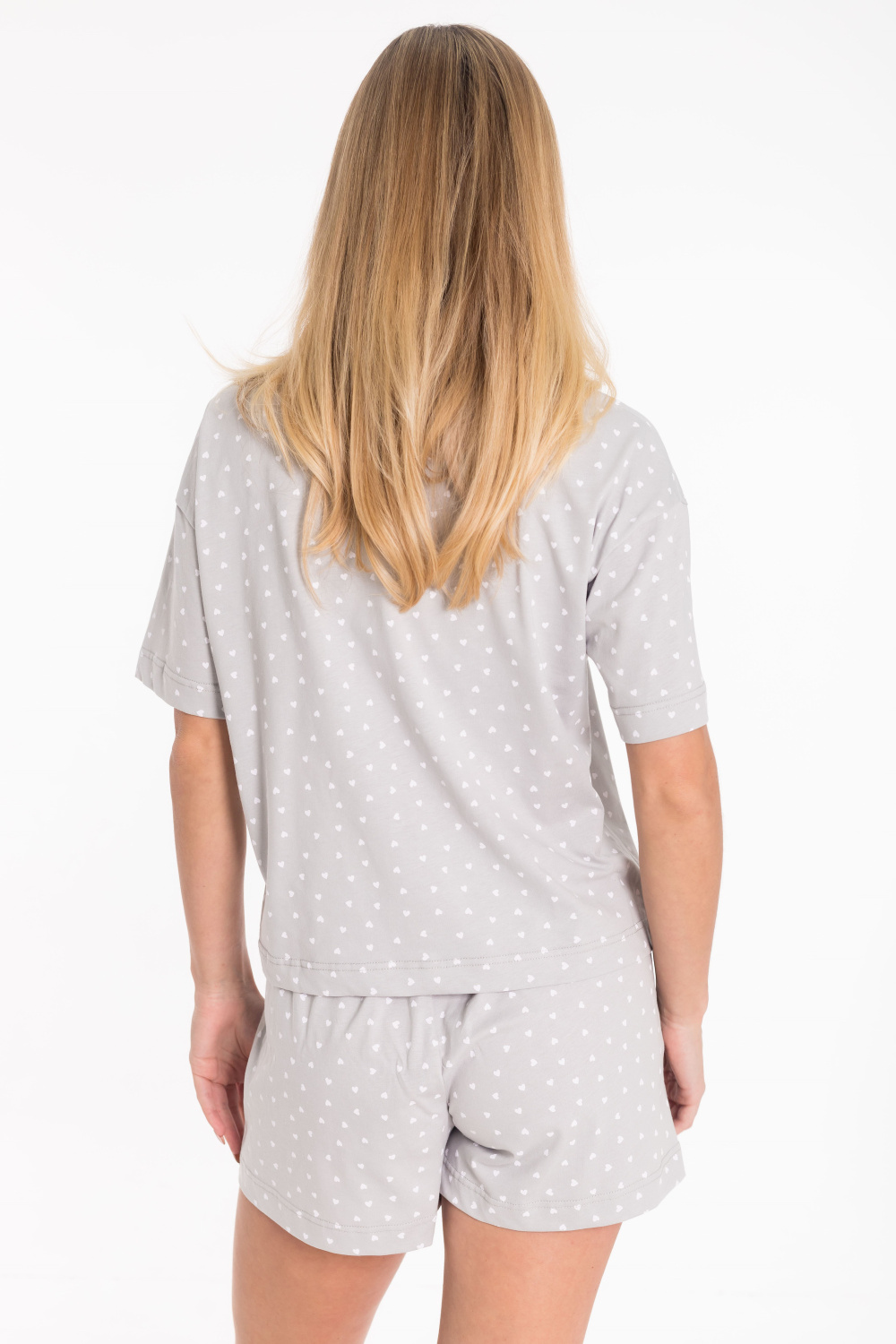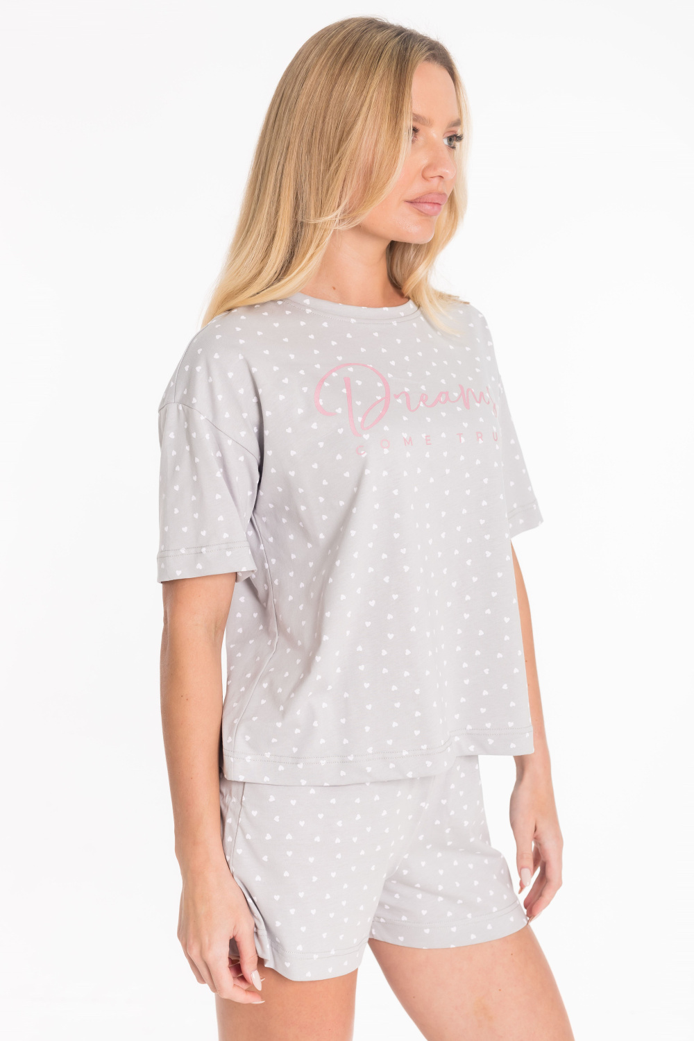 Женская пижама включает в себя футболку и шорты, выполненные из кулирки. Футболка прямого кроя со спущенным коротким рукавом, принтом и круглым вырезом горловины обеспечивает комфорт и свободу движений. Мягкое и приятное на ощупь полотно будет нежно ложиться на тело, создавая ощущение комфорта и уюта. Шорты короткие, с поясом на широкой резинке, обеспечивают идеальную посадку и удобство. Такой дизайн позволяет свободно двигаться и чувствовать себя комфортно даже во время сна.