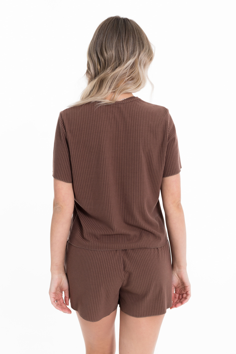 Пижама выполнена из кашкорсе с добавлением вискозы. Рубашка с коротким рукавом и застежкой на пуговицы спереди. Шорты свободные, с поясом на резине.