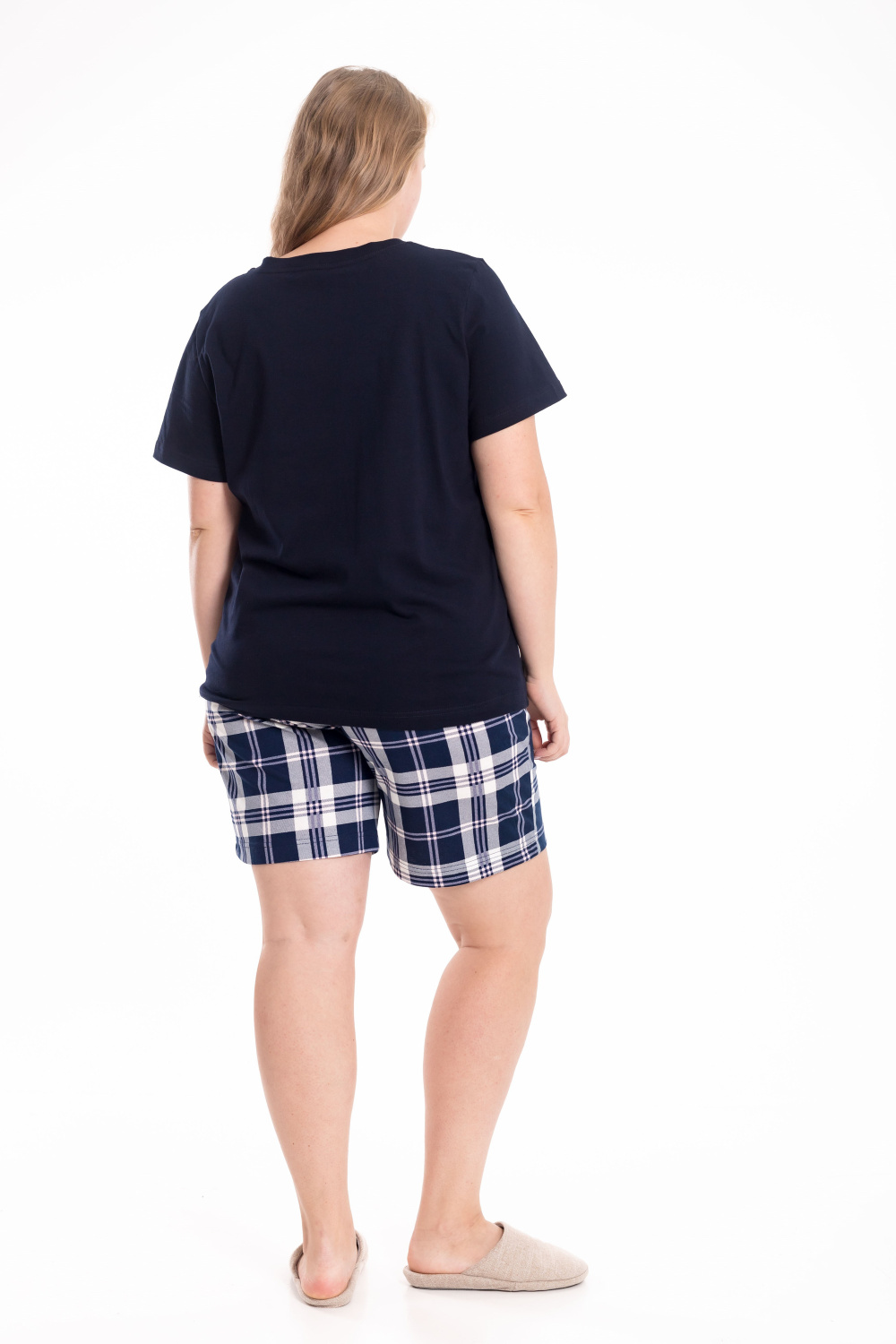 Женская пижама — отличный выбор для комфортного сна и отдыха. Пижама состоит из футболки и шорт, выполненных из мягкого хлопкового полотна. Футболка однотонная, с коротким рукавом и принтом спереди. Шорты из кулирки с набивным рисунком, с боковыми карманами и поясом на резинке, что обеспечивает свободу движений и комфортную посадку.