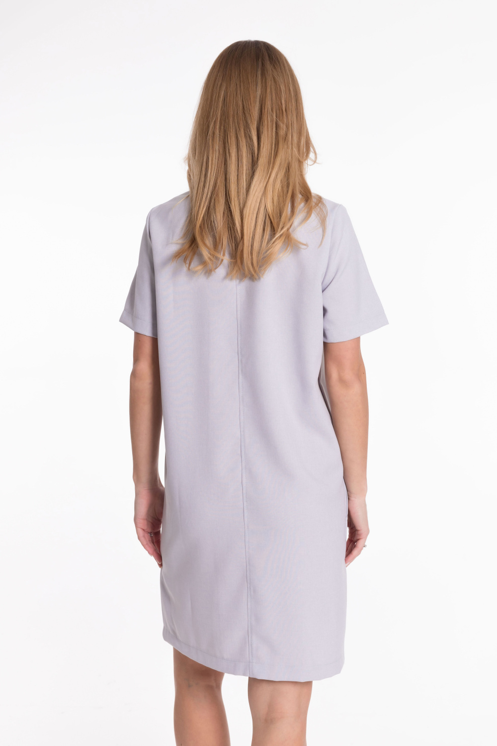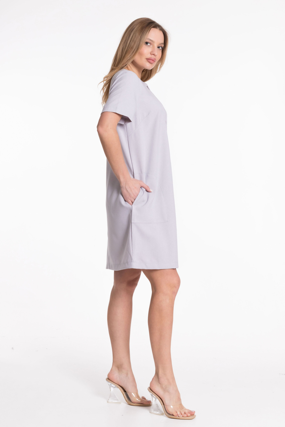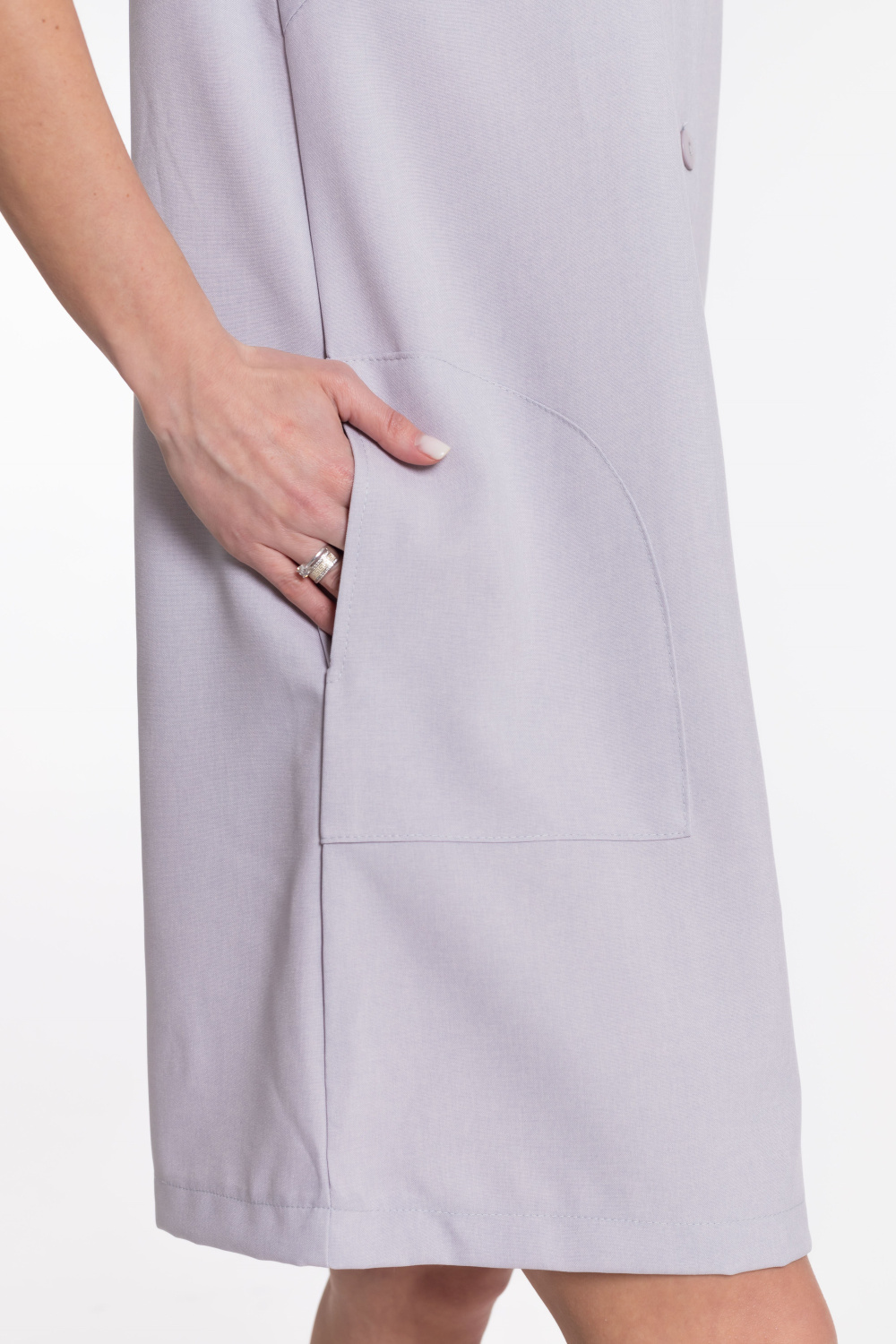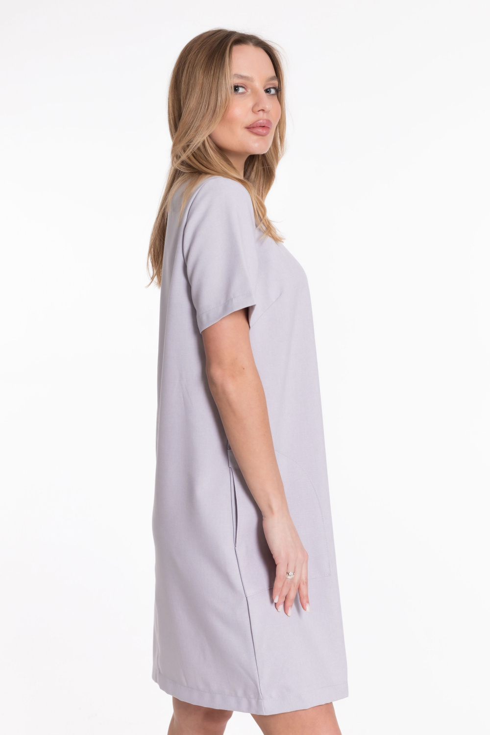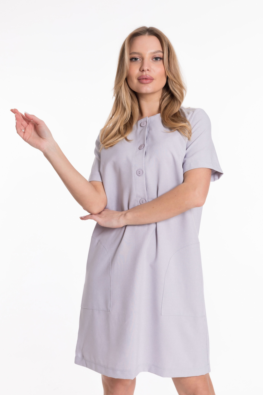 Свободного силуэта, застежка спереди, по боковым швам карманы, рукав свободный короткий.