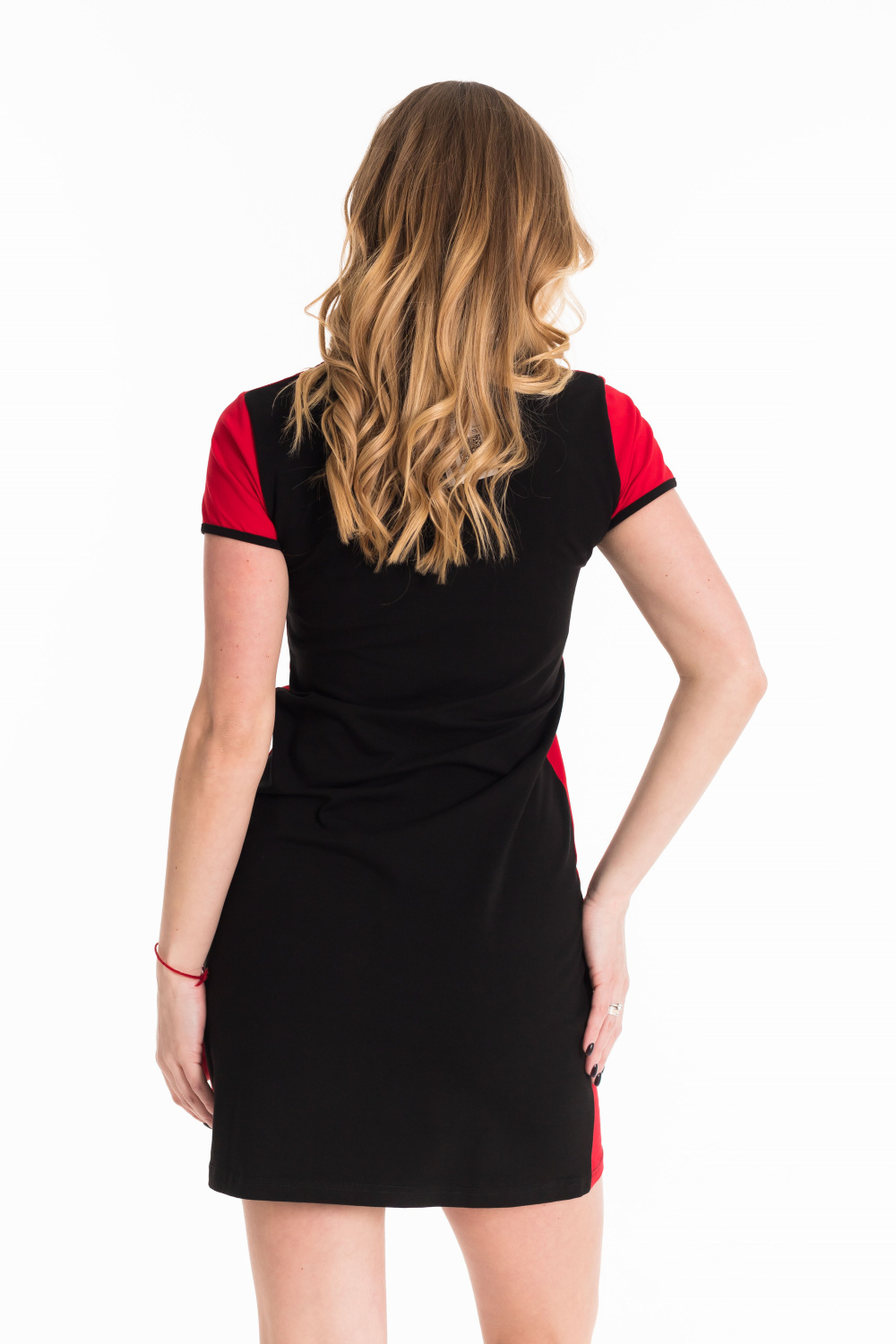 Платье молодёжное выполнено из кулирки с лайкрой. С круглым вырезом горловины и коротким рукавом, на вставке кокетки нанесён принт.