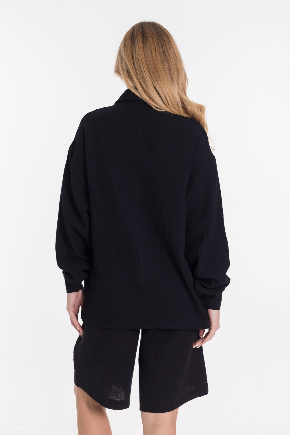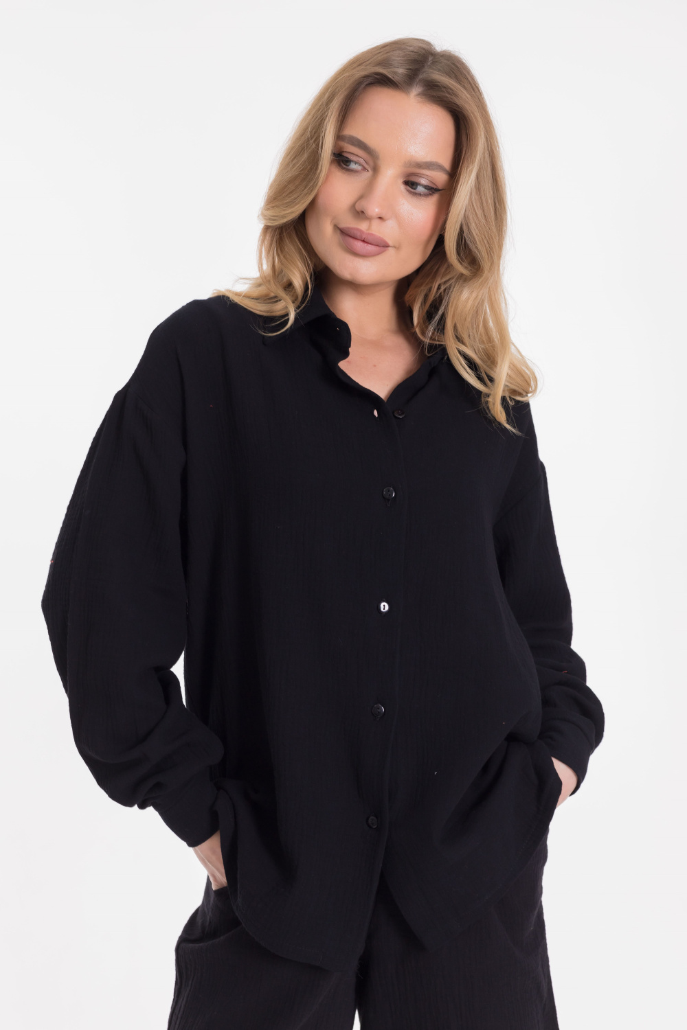 Женская рубашка — отличный выбор для повседневной носки. Она изготовлена из мягкого, лёгкого натурального материала — муслина. Рубашка имеет длинный спущенный рукав и застёжку на пуговицы. Воротник на отрезной стойке придаёт модели элегантность. В боковых швах есть небольшие разрезы, которые добавляют изюминку в дизайн. Такая однотонная рубашка идеально подойдёт для прогулок, отдыха или неформальных мероприятий. Она выполнена из качественного материала, который хорошо пропускает воздух и обеспечивает хорошую вентиляцию.