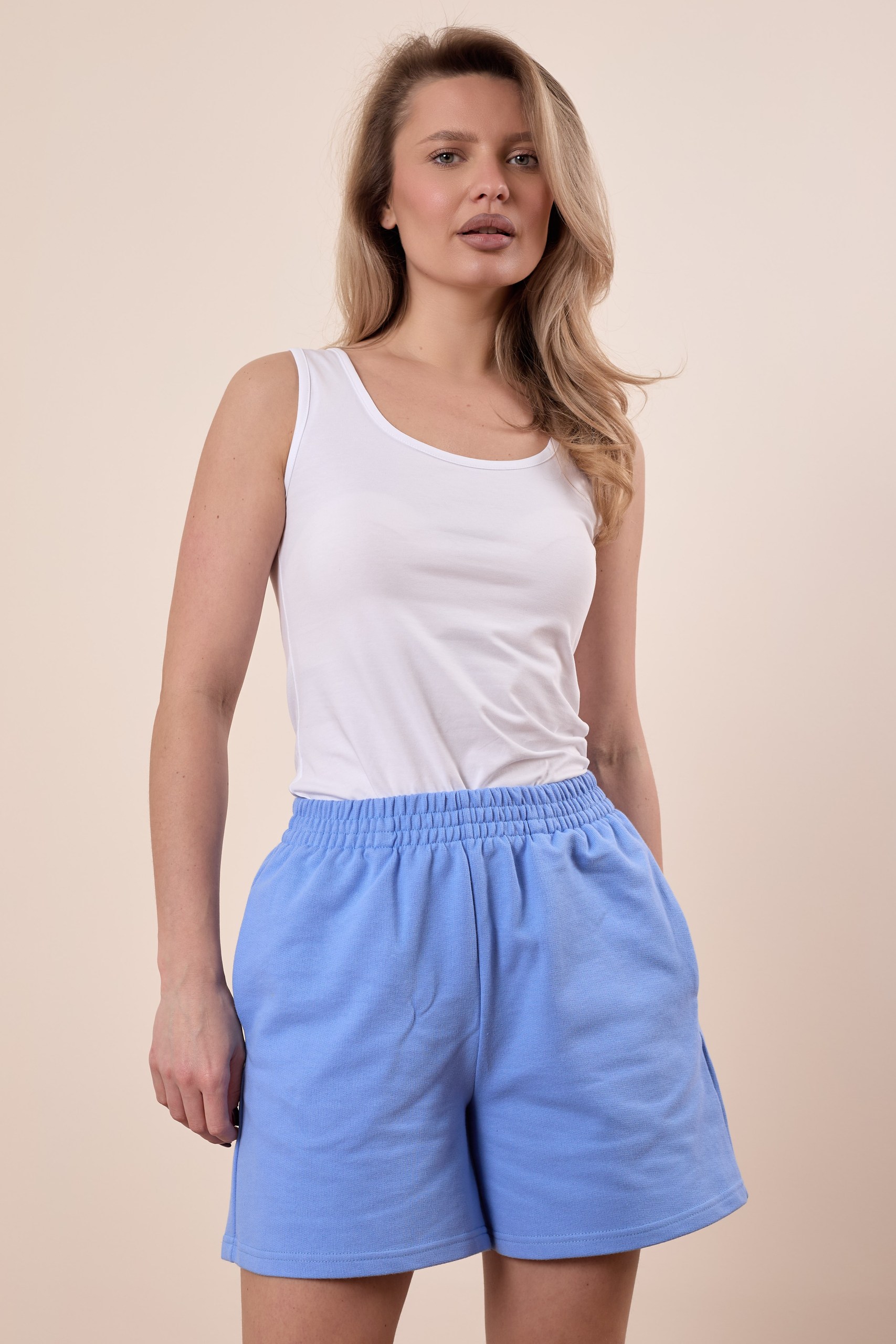 Шорты из футера двух нитки,с цельнокроенным поясом и карманами в