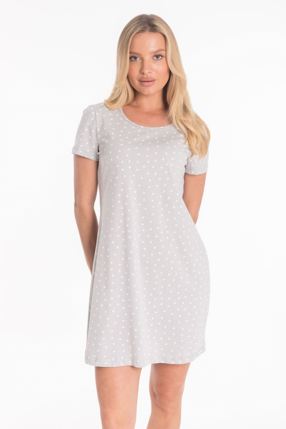 Сорочка выполнена из кулирки, 100% хлопок. Рукав короткий, втачной. Круглый вырез горловины, обработан бейкой. Такой дизайн сорочки позволяет свободно двигаться и чувствовать себя комфортно даже во время сна.