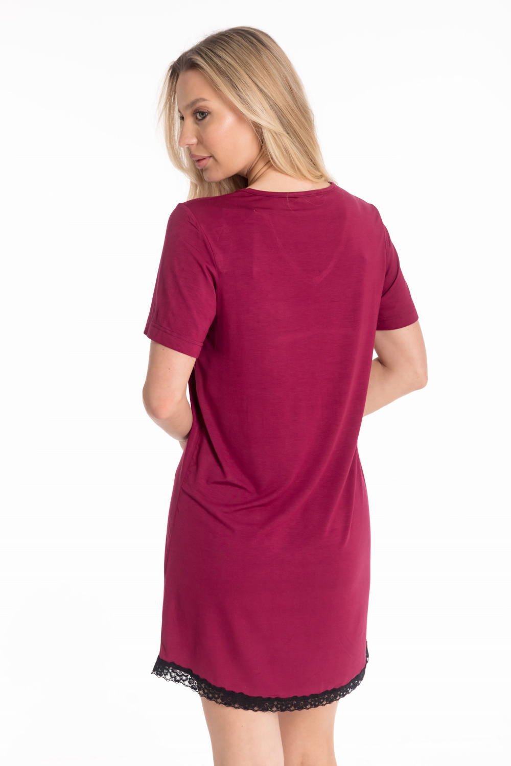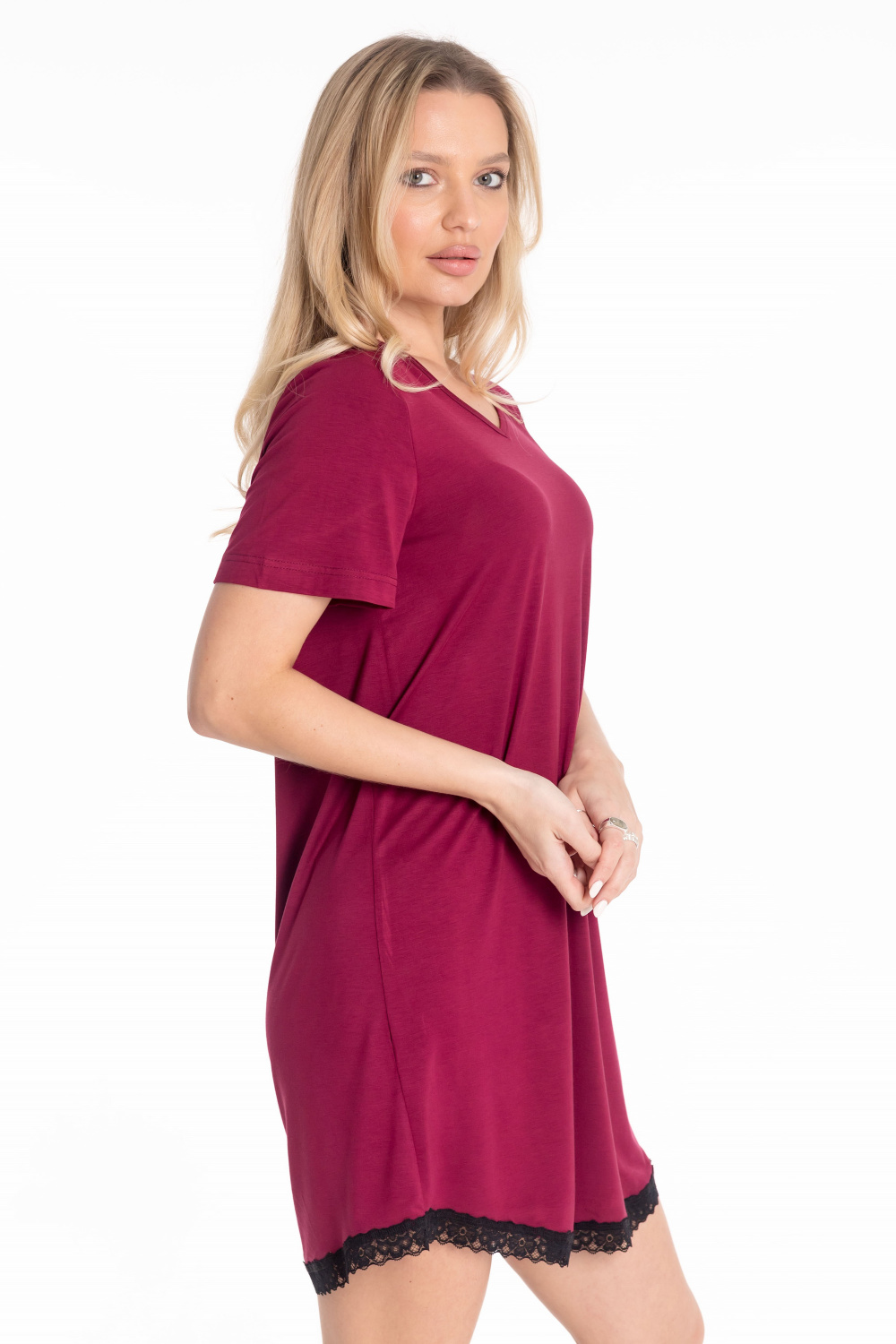 Женская сорочка с короткими рукавами выполнена из мягкой вискозы. Вырез горловины обработан бейкой, по низу изделия — изящное кружево. Лаконичный крой и лёгкая ткань обеспечивают комфорт и женственный вид.