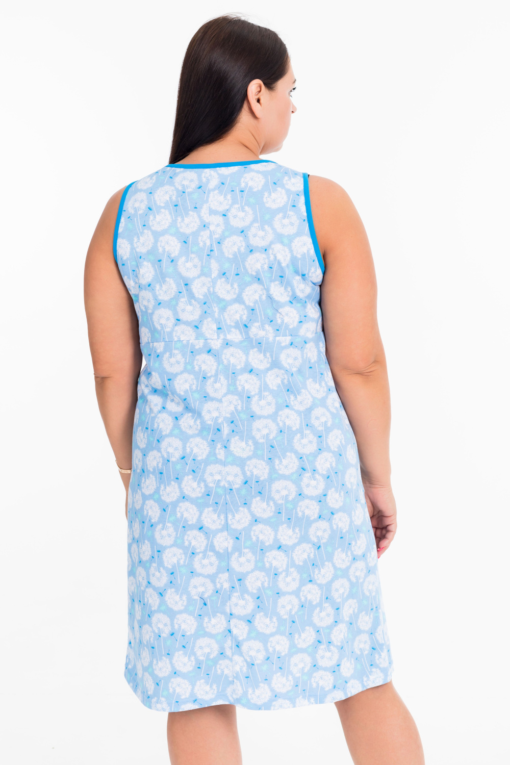Сорочка выполнена из хлопковой ткани с набивным рисунком. Покрой свободный, широкие бретели и вырез горловины оформлены контрастной по цвету бейкой.