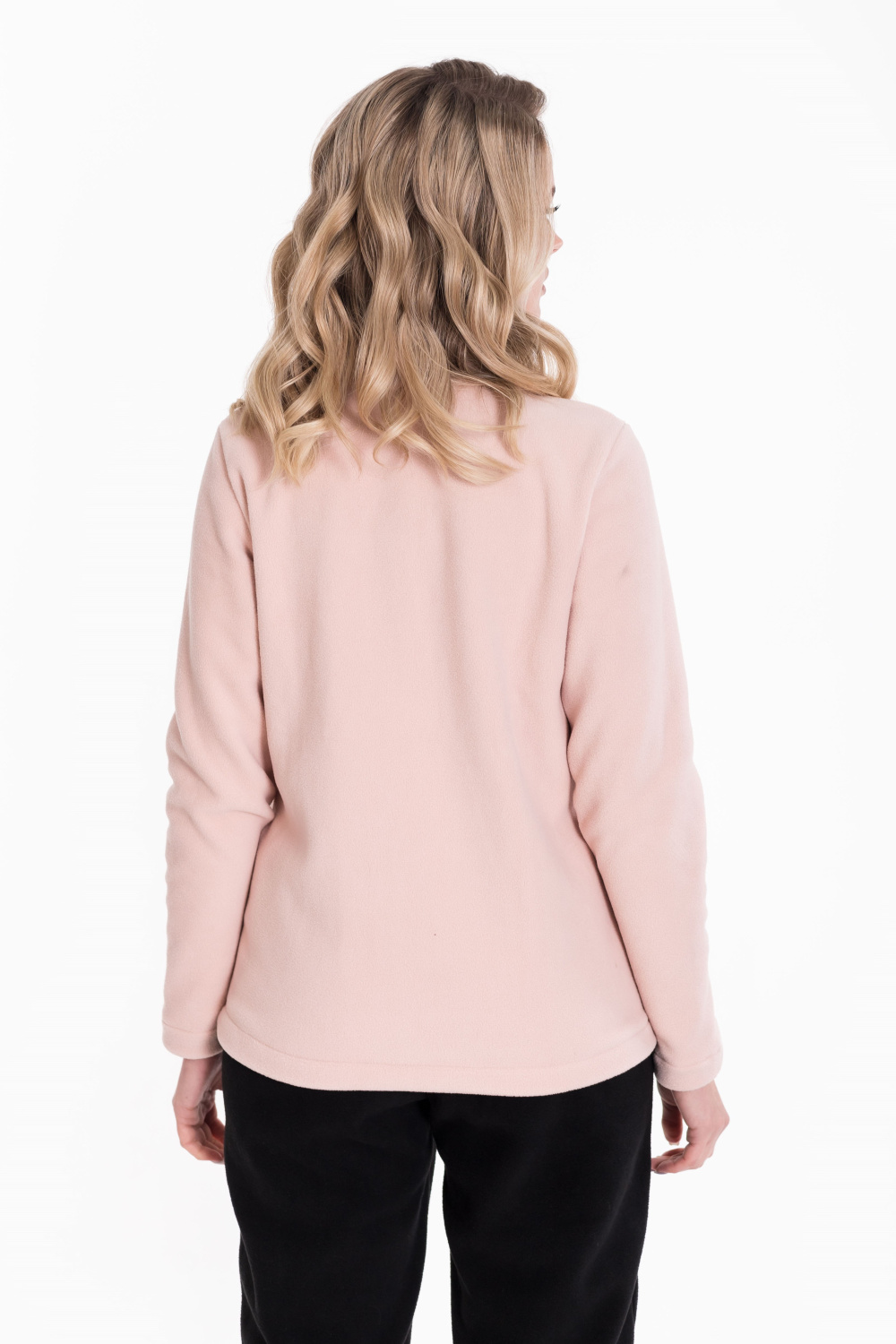 Толстовка из поларофлиса идеальна для тех, кто ищет уют и функциональность в холодное время года. Простой однотонный дизайн делает её универсальной и лёгкой для сочетания с другими элементами гардероба. Застежка на молнию обеспечивает удобство, а воротник-стойка защищает шею от холода. Особенностью дизайна являются рельефы на полочках, которые добавляют изделию элегантности и утонченности, скрывая входы в карманы. Небольшая вышивка на левой полочке придает изделию женственность и чувство стиля.