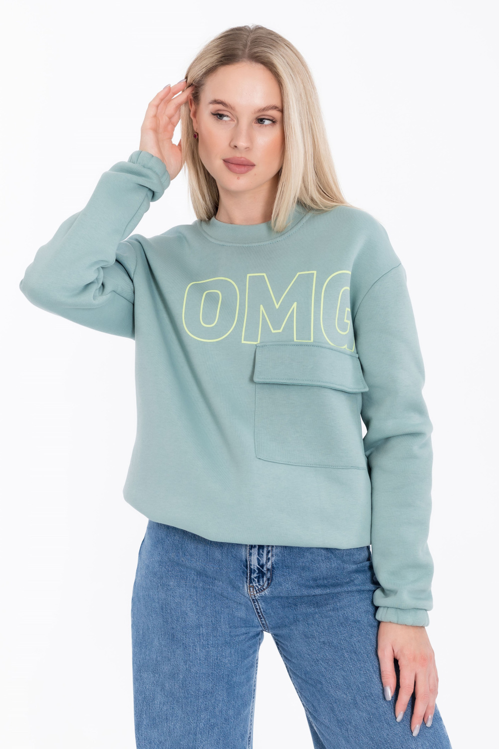 Женская толстовка из однотонного футера 3-х нитки с начёсом в цвете полынь - стильное и уютное изделие. Свободный крой и спущенный рукав с манжетами на резинке создают комфортный и модный образ. Декоративный большой карман поверх принта придает изделию оригинальность и интересный акцент.