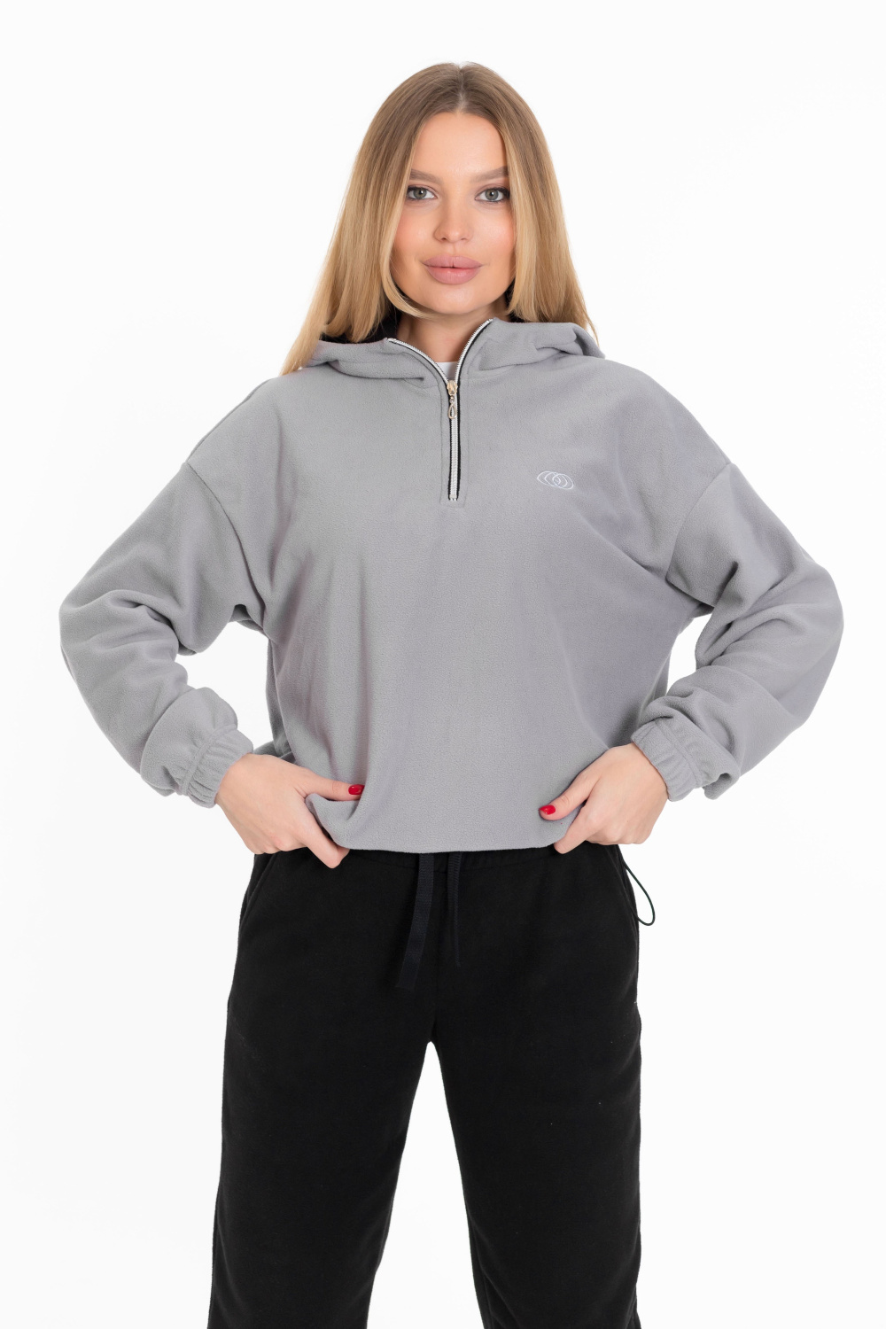 Женская толстовка из мягкого и тёплого однотонного серого флиса, который обеспечивает комфорт в прохладную погоду.