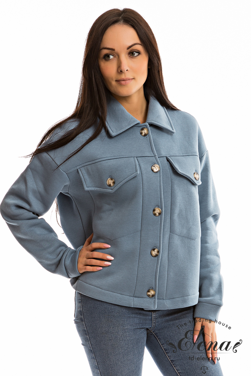 Тёплая, модная женская толстовка выполнена из полотна с начёсом (футер трёхнитка). Воротник отложной, длинные рукава заканчиваются манжетами из основного полотна. Толстовка застёгивается на пуговицы, спереди в верхней части размещены карманы с клапанами. Такая толстовка подойдёт для создания стильных и комфортных образов на каждый день.