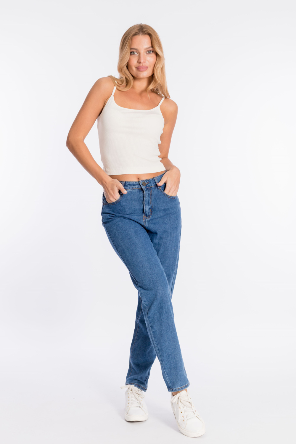 Женский топ на тонких бретелях выполнен из кашкорсе-вискозы.