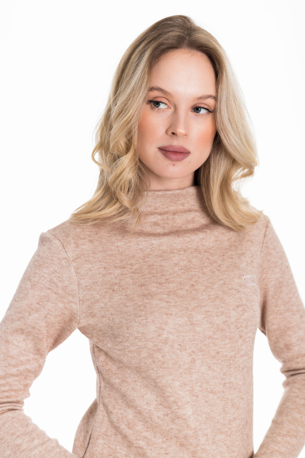 Женская водолазка выполнена из полотна "ангорка". С длинным втачным рукавом и элегантным цельнокроеным воротником. С левой стороны вышивка в виде логотипа. Невероятно мягкая и тёплая водолазка - идеальный выбор в прохладное время года, легко впишется в повседневный гардероб.