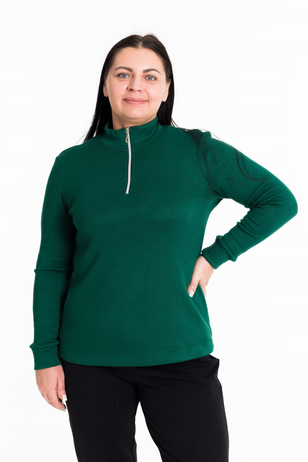 Водолазка из "ангорки", с небольшим воротником-стойкой с застёжкой молнию. Рукава втачные длинные, с манжетой.